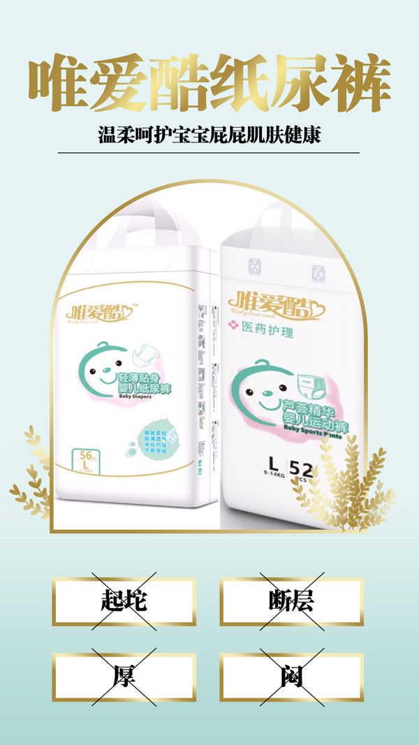 唯愛(ài)酷紙尿褲采用了高密度的材料,能防止尿液反滲,持久干爽。