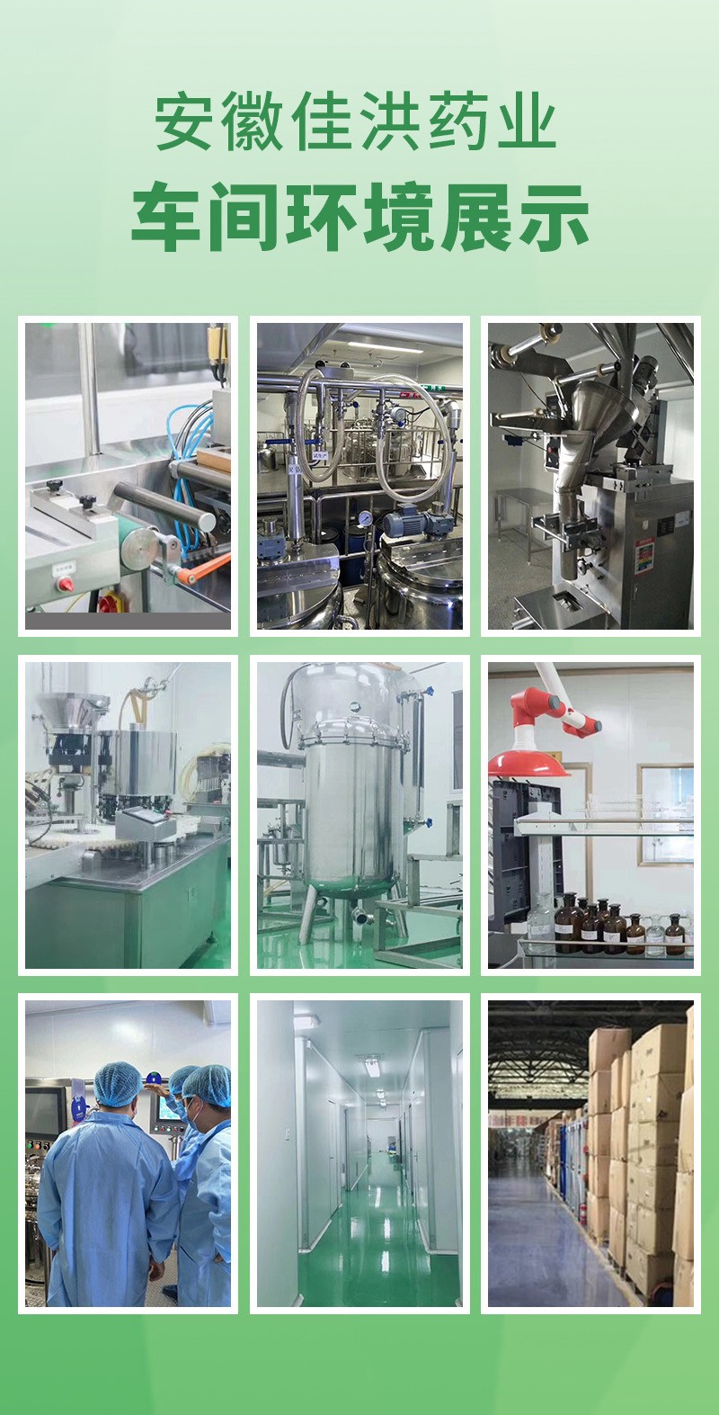 安徽佳洪健康產(chǎn)業(yè)有限公司位于全球最大的中藥材集散中心安徽亳州市,占地4600平方的現(xiàn)代化生產(chǎn)基地,其中生產(chǎn)車間占地2300平。倉儲面積2300平。國際先進(jìn)的生產(chǎn)檢測設(shè)備,固體制劑、口服液、軟膠囊、保健用品、消毒用品、醫(yī)療器械、代用茶等生產(chǎn)車間,可生產(chǎn)加工片劑、硬膠囊劑、軟膠囊劑、顆粒劑、粉劑、凝膠等劑型,提供最完善的一站式OEM加工服務(wù)。獨(dú)立的工藝布局走向,能夠?qū)崿F(xiàn)多品種、多劑型的同時(shí)聯(lián)動(dòng)生產(chǎn)和單一品種的獨(dú)立生產(chǎn)。創(chuàng)造獨(dú)立的品牌及品牌OEM基地。