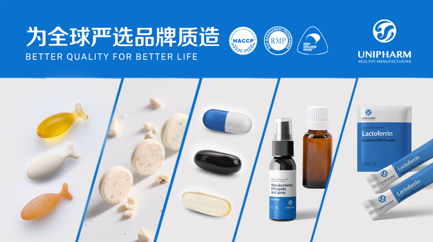 新西蘭聯(lián)合制藥 (Unipharm Healthy Manufacturing Co., Ltd) 建廠于1979年,擁有多年的保健品營養(yǎng)食品研發(fā)生產(chǎn)經(jīng)驗(yàn),致力于成為全球優(yōu)質(zhì)的營養(yǎng)健康解決方案服務(wù)商,為嚴(yán)選客戶“質(zhì)造”高標(biāo)準(zhǔn)營養(yǎng)產(chǎn)品。