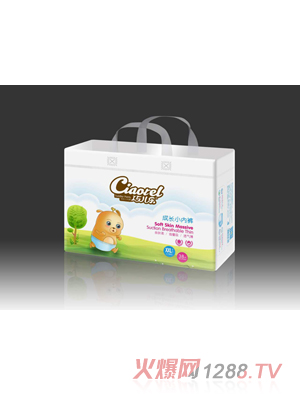 巧兒樂采用雙手挽式的外包裝、PE珍珠壓紋質(zhì)感上檔次,4個碼數(shù),根據(jù)bao--bao成長設(shè)計,可以橫擺或豎鋪在貨架上。發(fā)帖熊的LOGO生動搶眼,奪人眼球。不僅好看/360特別適合送禮用。